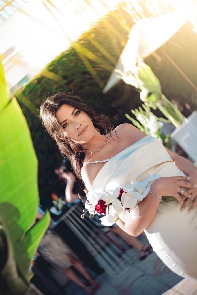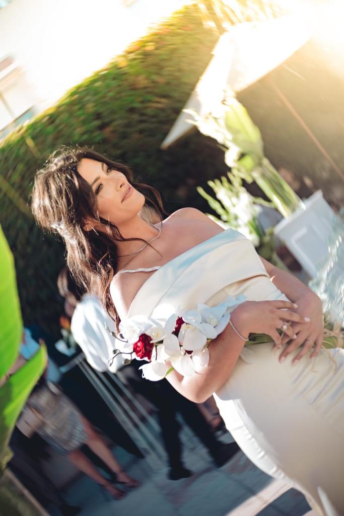 Une traîne de 1m30 et une taille marquée par une ceinture Swarovski ajoutent de la grâce à votre démarche et votre déhanchée.